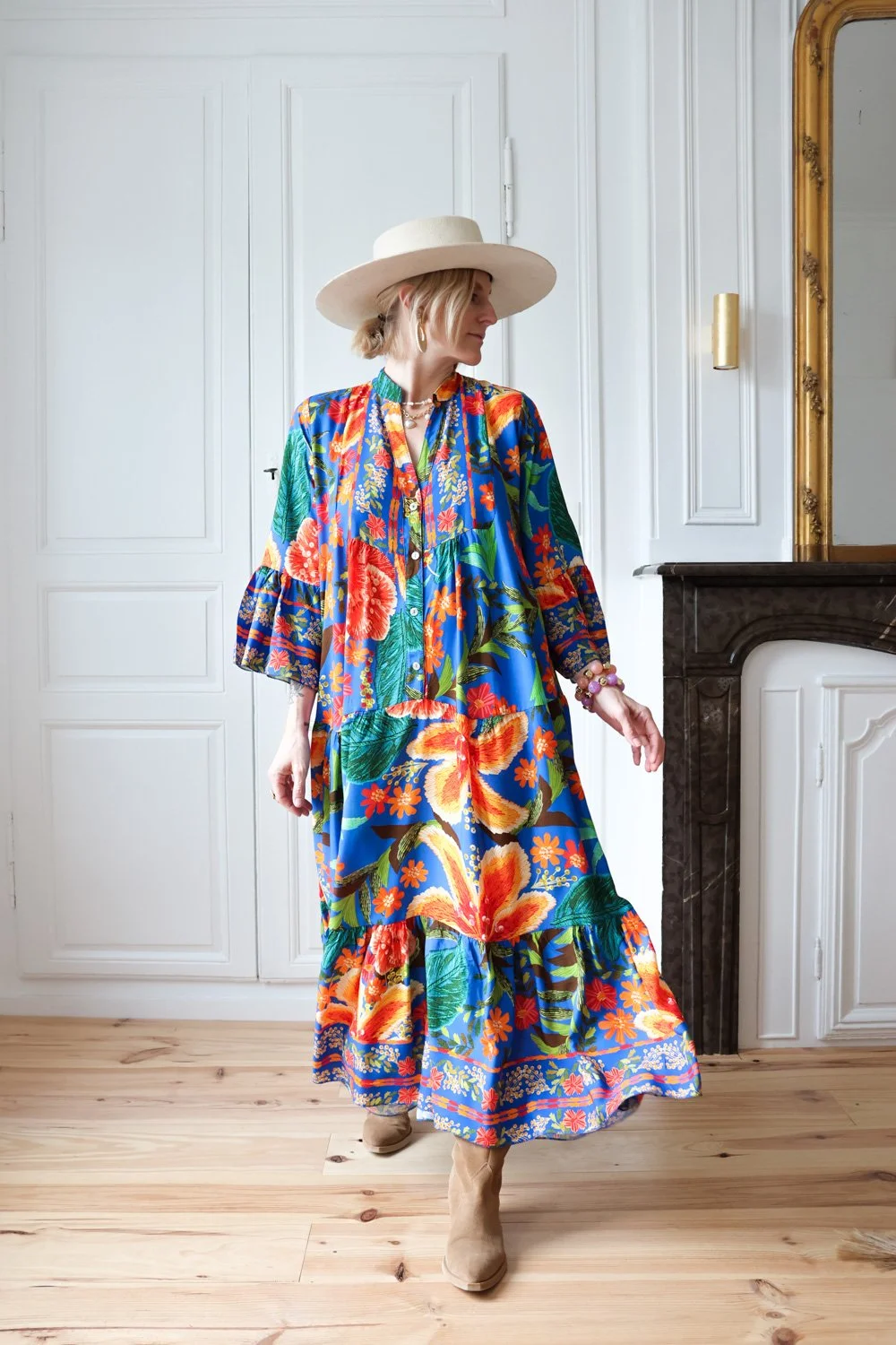 Plongez dans un univers bohème où robes longues, imprimés délicats et broderie anglaise s’unissent pour créer des looks féminins, fluides et intemporels.