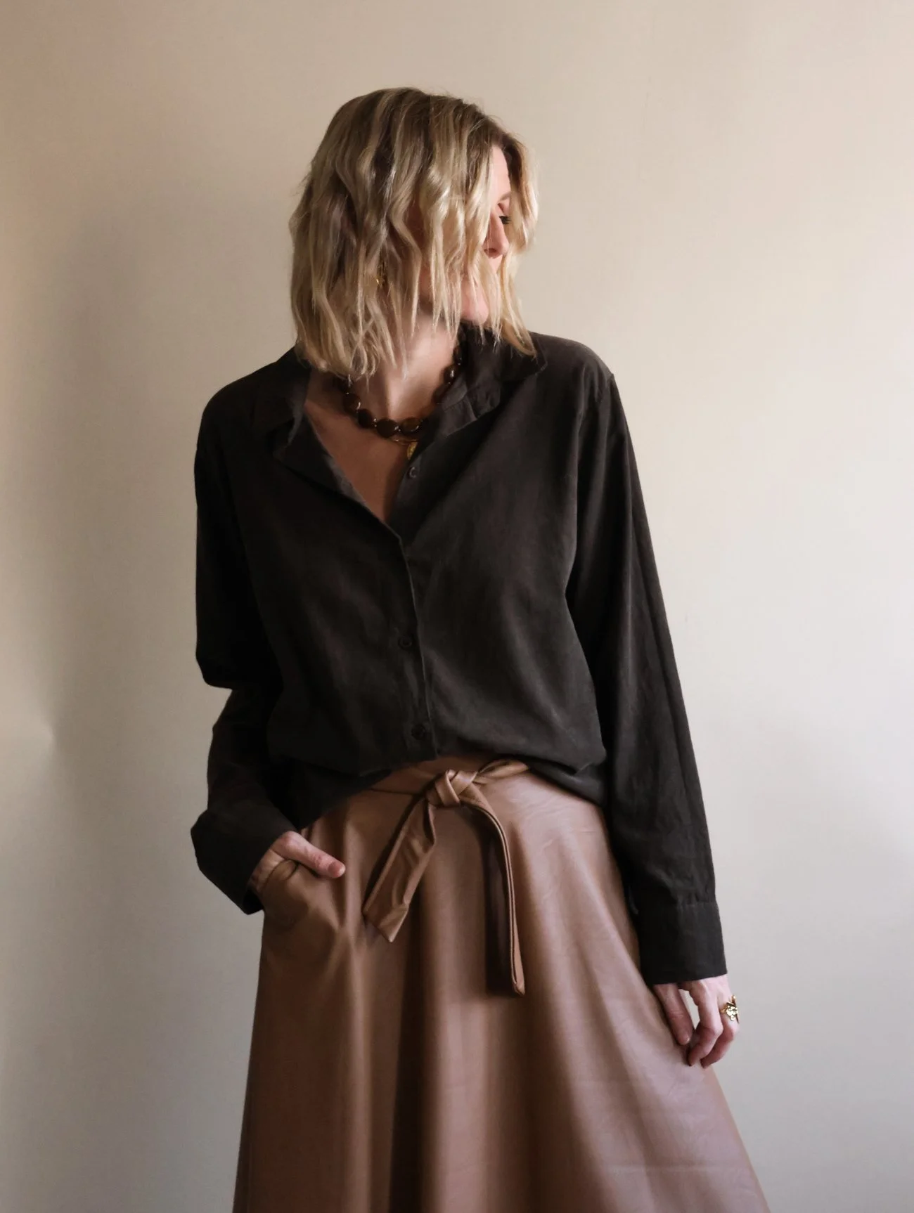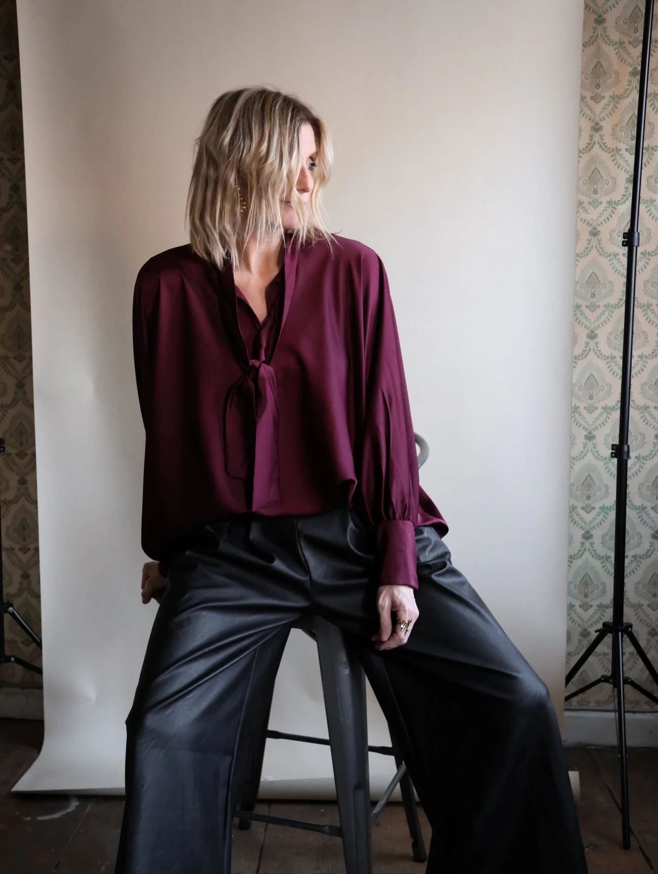 - Manches longues amples et bouffantes, fermées par 2 boutons