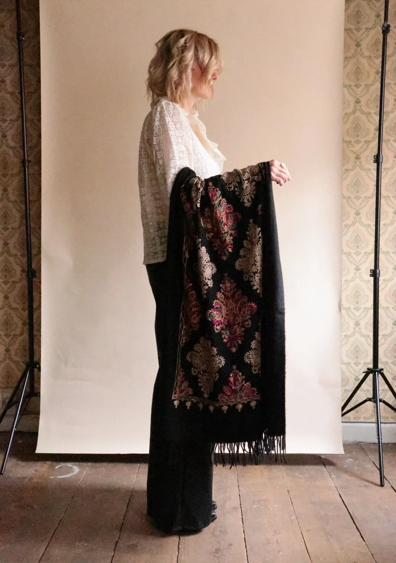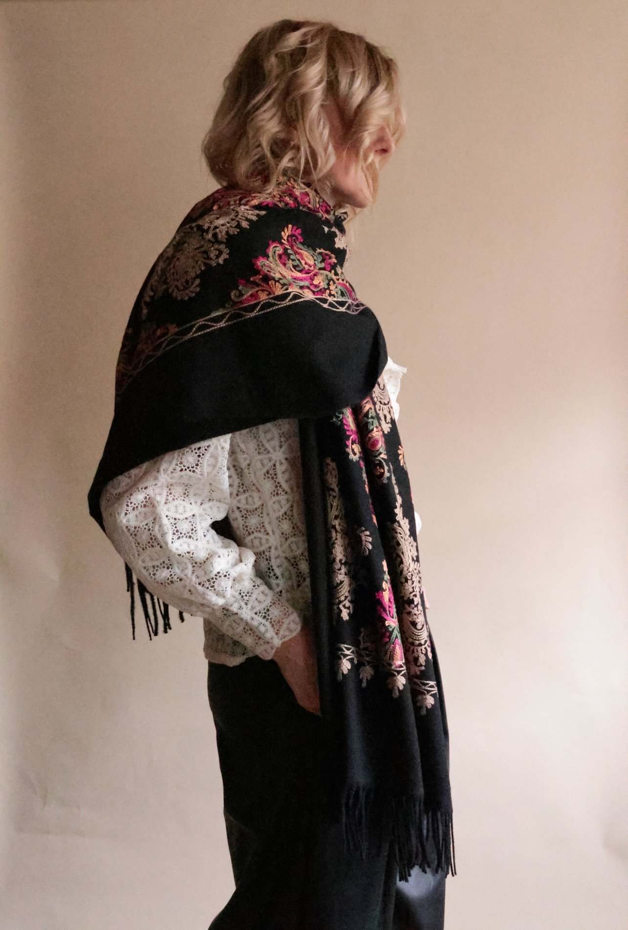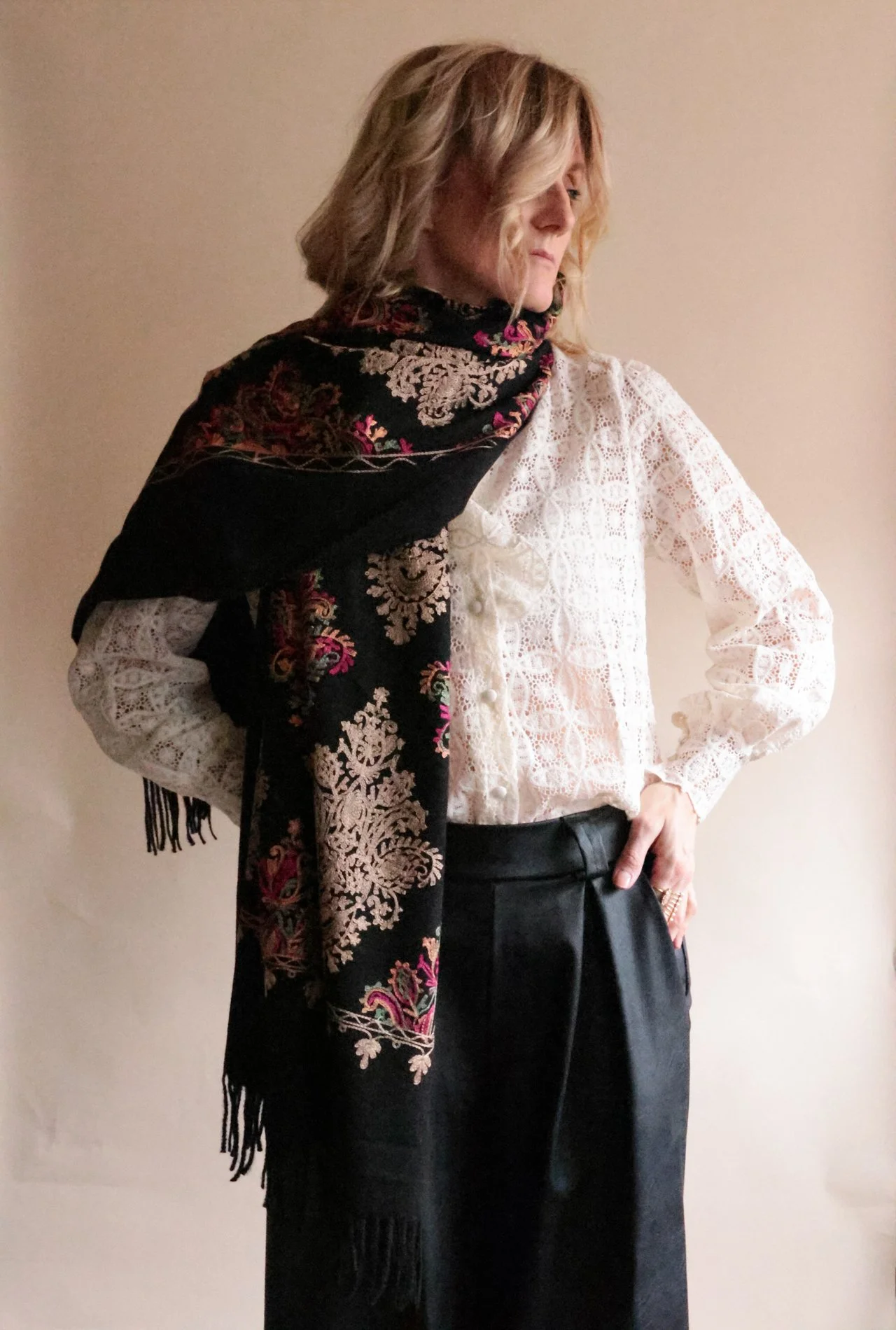 Echarpe avec cachemire et broderies INDIANA beige